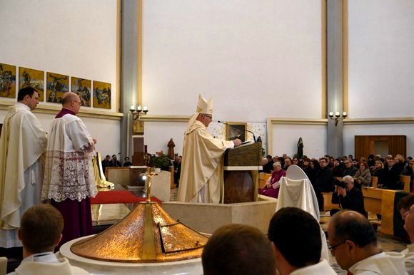 Šiandien čia, Šv. Angelės Meriči bažnyčioje, pagerbiame šventąją, kurią Dievas pašaukė atlikti daugybės gailestingumo darbų. Šį sekmadienį popiežius Pranciškus paskyrė Dievo Žodžiui, kurį randame Šventajame Rašte ir kuris turi mus vesti į šventumą. Dievo žodžio svarbą savo gyvenime ypač jutau du kartus: pirmąjį kartą pradėjęs noviciatą Jėzaus Draugijoje per didžiąsias rekolekcijas, o antrą kartą – KGB kalėjime. Niūrioje kameroje Šventojo Rašto mintys apie mumis besirūpinantį dangaus Tėvą buvo tarsi šviesos spinduliai, nušvietę ne tik kamerą, bet ir kalinio širdies kerteles.