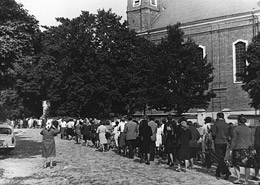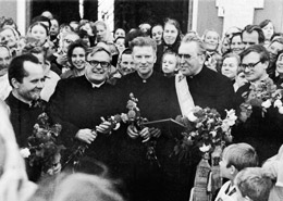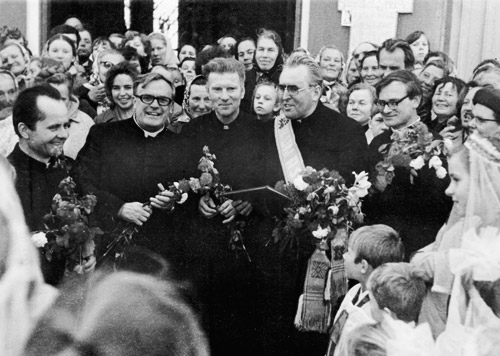 1973 m. pradedamos Eucharistijos bičiulių rengtos, sovietų saugumo persekiotos piligriminės eisenos į Šiluvą. Eucharistijos bičiulių sąjūdis, kurio pradžia neatsiejama nuo Eucharistinio Jėzaus seserų kongregacijos (ypač ses. Jadvygos Stanelytės), o istorija – nuo Kauno, per kelerius metus nuo 1969 m. paplito visoje Lietuvoje. Pirmoji vieša akcija – 1973 m. gegužės 19–20 d. kryžiaus pastatymas Kryžių kalne. Sąjūdis rengė permaldavimo eisenas į Šiluvą, atstatė ir prižiūrėjo Kryžių kalną, ugdė jaunimą katalikiška, patriotine dvasia, dalyvavo pogrindinėje kovoje už tikėjimo laisvę. 1975 m. Kaune viešėjo Berlyno arkivyskupas kardinolas Alfredas Bengschas, kurio apsilankymas padidino tikinčiųjų aktyvumą. 1978 m. įsisteigus Tikinčiųjų teisių gynimo katalikų komitetui, Lietuvoje sustiprėjo tikinčiųjų teisių gynimo sąjūdis. Šiluvoje padaugėjo maldininkų, buvo organizuojamos pogrindinės rekolekcijos, maldininkų eisenos į Kryžių kalną, dar aktyvesni pasidarė Eucharistijos bičiuliai. 1979 m. ėmė kurtis kunigų tarybos, kurios įsitraukė į tikinčiųjų teisių gynimą. Vis daugiau jaunuolių pareikšdavo norą tapti kunigais. 1985 m. Kauno kunigų seminarija gavo net 45 norinčiųjų studijuoti pareiškimus. Aštuntajame dešimtmetyje Kauno tarpdiecezinei kunigų seminarijai buvo grąžintas pokario metais atimtas rektorato pastatas, Švč. Trejybės bažnyčia.