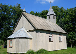 Bažnyčia yra liaudiškos architektūros, stačiakampio plano, su žema penkiasiene apside, virš stogo iškilęs bokštas ir bokštelis.