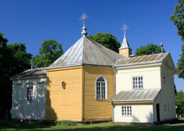 Priešais bažnyčią, kairėje, yra 1873 metais statyta medinė varpinė. Jinai tipiška, dviejų tarpsnių. Stogo barokinis bokštelis panašus į absidos. Sienos apmuštos sudvigubintomis statmenomis lentelėmis. Šią įdomią bažnyčią ir varpinę 1939 metais yra nutapęs žymus dailininkas M. Dobužinskis.