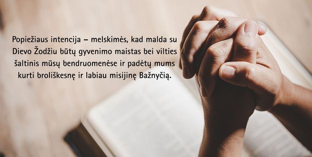 POPIEŽIAUS intencija – – kad malda su Dievo žodžiu būtų gyvenimo maistas bei vilties šaltinis mūsų bendruomenėse ir padėtų mums kurti broliškesnę ir labiau misijinę Bažnyčią;