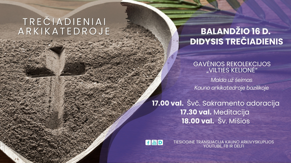 Balandžio 16 d. , Didįjį trečiadienį, Kauno arkikatedroje bazilikoje užbaigiame Gavėnios rekolekcijas tema „Vilties kelionė“.
