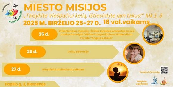 Miesto misijos sugrįžta! Tai ypatinga proga drauge išgyventi gyvą Bažnyčią miesto centre – kviečiame vaikus, jaunimą, šeimas, visus miestiečius ir miesto svečius dalyvauti renginiuose, kurie įkvepia, vienija ir augina.
