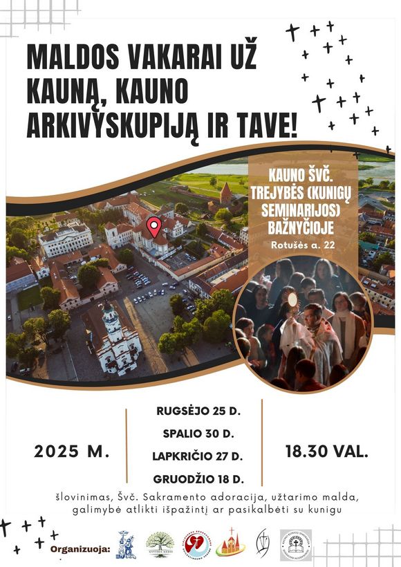 Daugiau kaip dešimt metų žmonėms jau pažįstami ir jų pamėgti  MALDOS VAKARAI UŽ KAUNĄ, KAUNO ARKIVYSKUPIJĄ IR TAVE paskutiniais rugsėjo–gruodžio ketvirtadieniais rengiami Kauno Švč. Trejybės (kunigų seminarijos) bažnyčioje (Rotušės a. 22).