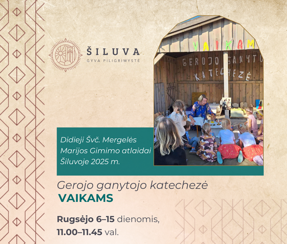 Didžiųjų Švč. Mergelės Marijos Gimimo atlaidų Šiluvoje metu vaikai kviečiami į katechezes, kurios vyks aikštės gale, specialiai veikloms įrengtoje pavėsinėje.