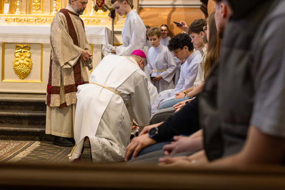 Arkivyskupas Kęstutis, persijuosęs rankšluosčiu ir pasilenkęs prie kiekvieno iš šių jaunų žmonių, užpylė vandens ir nušluostė jiems kojas – Kristaus pavyzdžiu, Jo tarnavimo gestu. Juk duotas naujas įsakymas: „kad Jūs vienas kitą mylėtumėte, kaip aš jus mylėjau.“