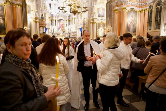 Kai po ugnies palaiminimo su Velykine žvake – Paschalu – procesija žengė į arkikatedrą, prieblanda nuo uždegtų žvakių žmonių rankose tapo išsklaidyta, nušvito veidai: Kristus tikrai mums šviečia!