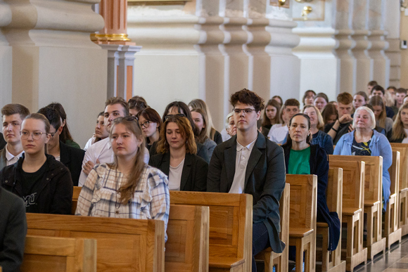 Gegužės 27 d. Kauno arkivyskupo Kęstučio Kėvalo ir Kauno m. savivaldybės Švietimo skyriaus vedėjos Onutės Gucevičienės pakviesti miesto gimnazijų abiturientai, jų tėveliai, mokytojai bei mokyklų vadovai susirinko į Kauno arkikatedrą baziliką bendra malda apkabinti šio svarbaus jų gyvenimo laikotarpio – egzaminų sesiją bei studijų ir gyvenimo krypties apsisprendimo momentus.