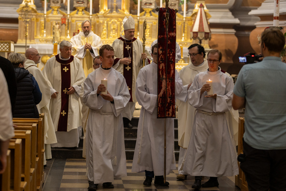 Pasibaigus Švenčiausiojo Sakramento adoracijos valandėlei, šv. Mišioms vadovavęs Kauno arkivyskupijos augziliaras vyskupas Saulius Bužauskas pasveikino visus besidarbuojančius katechezėje, taip pat arkikatedros lankytojus bei pakvietė pasimelsti už kardinolą, buvusį Kauno arkivyskupijos ganytoją (1989–1996 metais) Vincentą Sladkevičių, kad jis užtartų iš dangaus, be to, priminė žmones patraukdavusį jo kuklumą, paprastumą, troškimą labiausiai mylėti Viešpatį.