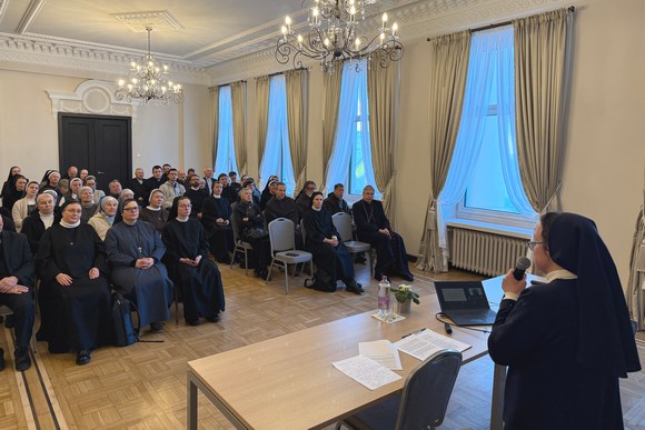 Kauno arkivyskupo Kęstučio Kėvalo kvietimu susirinkę Kauno arkivyskupijos kurijos salėje broliai ir seserys vienuoliai klausėsi sesers Viktorijos Plečkaitytės MVS konferencijos, skirtos Kauno arkivyskupijos įsteigimo šimtmečiui paminėti.