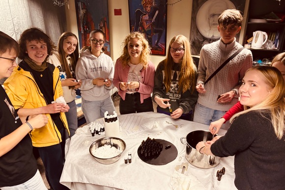 Išklausę katechezę apie šventųjų aliejų prasmę ir jų vietą Bažnyčios gyvenime, jaunimas su pagarba ir atsidavimu juos supilstė į specialius indus, taip prisidėdami prie artėjančios šventės ir visos Bažnyčios liturginio gyvenimo.