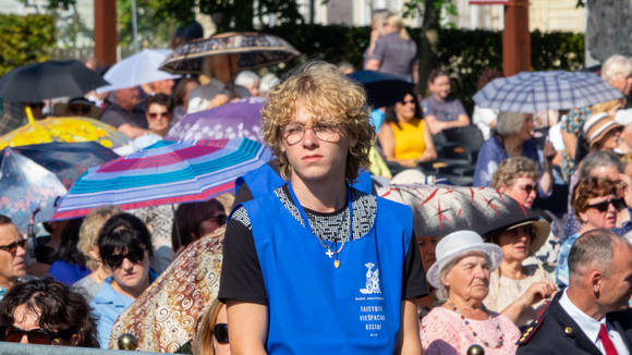 Su naujai parengta giedojimo programa atvyko kasmetiniai Šiluvos atlaidų piligrimai – LR Vidaus reikalų ministerijos vyrų choras „Sakalas“, vadovaujamas Romo Makarevičiaus, bei Lietuvos policijos reprezentacinis pučiamųjų orkestras, vadovaujamas Eimanto Anskaičio. Jų dėka palaimintoje Šiluvos žemėje, kur per kartų kartas maldauta laisvės, šiandien laisvai ir galingai suskambėjo mūsų valstybės himnas!