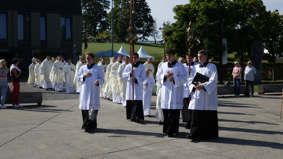 Iškilmingai Eucharistijai vadovavo Kaišiadorių vyskupas Jonas Ivanauskas, koncelebravo visi trys Kauno arkivyskupijos ganytojai bei daugiau kaip dvi dešimtys kunigų iš įvairių vyskupijų. Giedojo bendruomenės „Jono Pauliaus II piligrimai“ jaunieji Viešpaties šlovintojai. Kaip ir kasdien, patarnavo diakonai bei Vilniaus seminarijos klierikai.