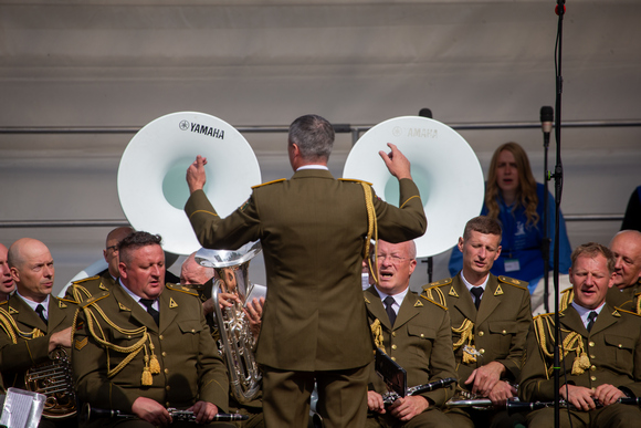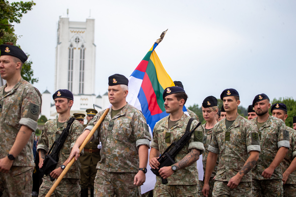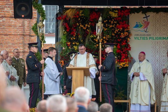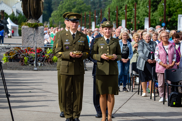 Antrą kartą per šiuos atlaidus, šį kartą sugiedotas karių, Šiluvos aikštėje nuskambėjo Lietuvos himnas.