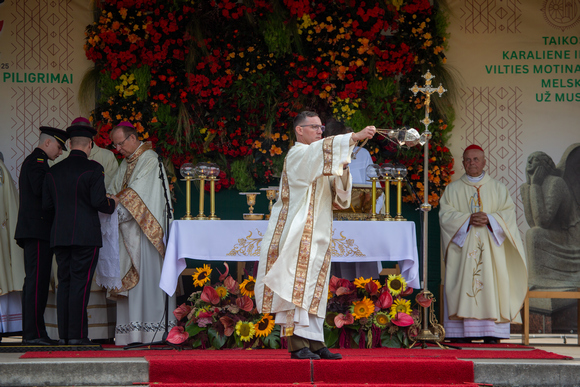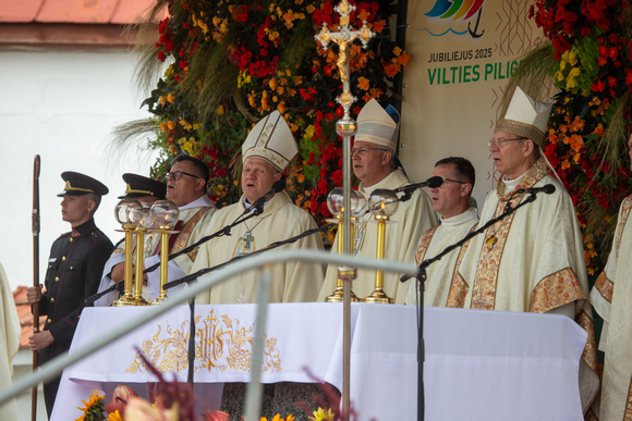 „Susirenkame čia (Šiluvoje) melstis už taiką, mūsų kariuomenę ir karius. Meldžiamės, kad kiekvienoje liturgijoje jie galėtų pasisemti išminties ir jėgų, prasmės ir drąsos tarnauti taikai, būti pasiruošę aukotis. Malda, kaip ir bet kokį įgūdį, reikia išlavinti, treniruoti – užsiauginti „maldos raumenis“. Labai svarbu, kad mes esame čia, kur Marija turi savo maldos mokyklą. Marija visuose savo apsireiškimuose kviečia į maldą“, – be kita, sakė arkivyskupas, Kariuomenės ordinariato apaštalinis G. Grušas, atkreipdamas dėmesį, jog visi – pasauliečiai, vienuoliai, kiekvienas krikščionis – turi pareigą melstis už taiką Ukrainoje, Lietuvoje, pasaulyje, už kariuomenę ir jos karius. Jei nori taikos, melskis. Marija, melski už mus!
