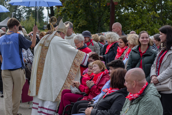 „Šioje Mišių aukoje noriu apglėbti kiekvieną iš jūsų, brangieji, kurie nešate įvairius gyvenimo kryželius – negalią, ligą, senatvę ar dvasinius sunkumus. Į jus noriu pažvelgti su meile ir pagarba ir dėkoti, kad jūs priimate šį gyvenimą. Jūs nesate silpni mūsų visuomenės nariai. Jūs esate mūsų žmogiškos bendruomenės širdis, nes jūsų gyvenime labiausiai galime pamatyti Viešpaties artumą. Jūs mokote tų dalykų, kurių neišmoksime nei knygose, nei paskaitose, – ištvermės, kantrybės ir tikrosios vilties“, – sakė vysk. D. Trijonis ir palinkėjo parsivežti iš atlaidų pastabesnį, priimantį žvilgsnį į kitą žmogų.