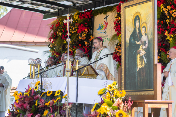 Šios dienos susitikimo džiaugsmą ir dėkingumą be žodžių išreiškė ne kartą aikštėje nuvilniję žmonių plojimai, kai arkivyskupas K. Kėvalas Eucharistijos pradžioje džiugiai linkėjo, kad maldoje atsivertų širdys, kaip Šiluvoje kitados atsivėrė dangus, ir pristatė liturgijos vadovą arkivyskupą V. Kulboką, koncelebruojančius kardinolą Sigitą Tamkevičių SJ, vyskupus Eugenijų Bartulį, Saulių Bužauską, Joną Kaunecką, kunigus, ypač tarnaujančius šeimų sielovadai, diakonus Darių Chmieliauską, Mantą Milerį, Arūną Raudonių, giedantį jaunimą – Jono Pauliaus II piligrimų centro chorą, vadovaujamą Almanto Gaižausko.