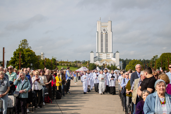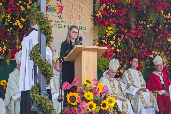Sekmadienio Eucharistija buvo švenčiama pilnutėlėje Šiluvos aikštėje, kur pats Viešpats dovanojo taikų dangų ir galimybę įsijungti į šioje žemėje jau daugiau kaip 500 nenutrūkstantį Dievo garbinimą.