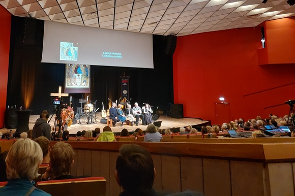 Programoje laukė ypatinga susitikimas – po išvakarėse vykusio krikščioniškųjų bendruomenių sambūrio Kaune, Lietuvos svečias Johannesas Hartlas, pasaulyje žinomas teologas ir Dievo meilės liudytojas, filosofas, rašytojas, be to, ir keturių vaikų šeimos tėvas, Atsinaujinimo dienos dalyviams pasiūlė pranešimą apie Dievo šlovę ir grožį. Kaip ir pats sakė, apie tai nedažnai kalbama mūsų bažnyčiose, kur kalbama apie viską, bet mažai apie Dievą.