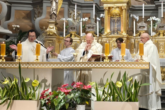 Šv. Mišioms vadovavo vyskupas Saulius Bužauskas. Savo homilijoje ganytojas kvietė įsigilinti į Evangelijos žodžius, tikybos mokytojams ir katechetams linkėjo stiprybės, įkvėpimo bei drąsos skelbti Evangeliją mokyklose ir kitose bendruomenėse.