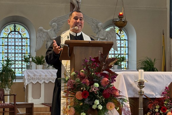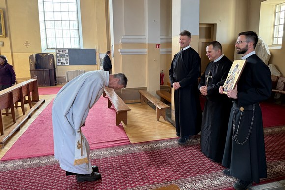 Raudondvario klebonas, Kauno II dekanato dekanas kunigas Erastas Murauskas uždėjo kunigams misionieriams stulas kaip įgalinimo ženklą vesti misijas jo parapijoje.