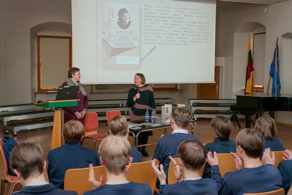 Knygos „Adelė. Slapta vaikų draugė“ pristatymai Vilniaus jėzuitų gimnanzijoje, Kaune, Šiluvoje, LR Seimo skaitykloje (2023, nuotr. Konstantino Karašausko)