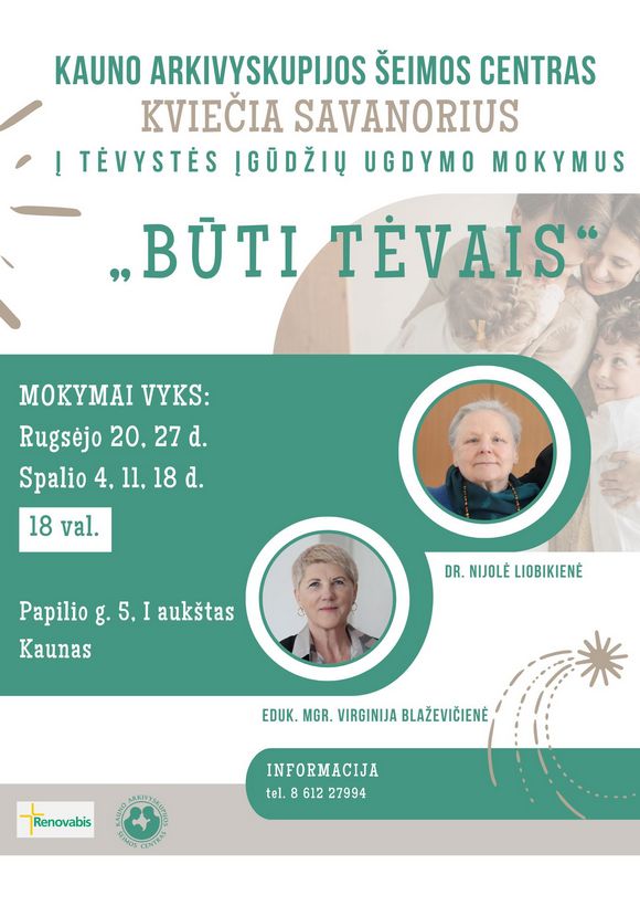 Kauno arkivyskupijos Šeimos centras kviečia į mokymus, kurie skirti norintiems vesti programą „Būti tėvais“ parapijose, bendruomenėse ar pritaikyti įgytas žinias savo šeimoje.
