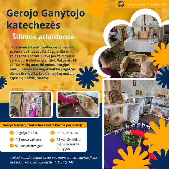 ŠILINĖS VAIKAMS! Kviečiame į Gerojo Ganytojo katechezes – smagias pamokėles 4–8 metų vaikams Šiluvos atlaidų metu.