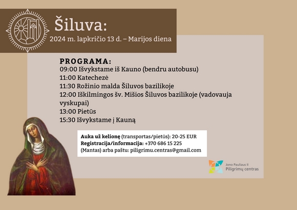 Lapkritį švenčiame Švč. Mergelės Marijos Gailestingumo Motinos iškilmę ir kaip įprasta kiekvieno mėnesio 13 dieną kviečiame kartu keliauti į Šiluvą, kur vyks mažieji Šiluvos atlaidai – Marijos diena.
