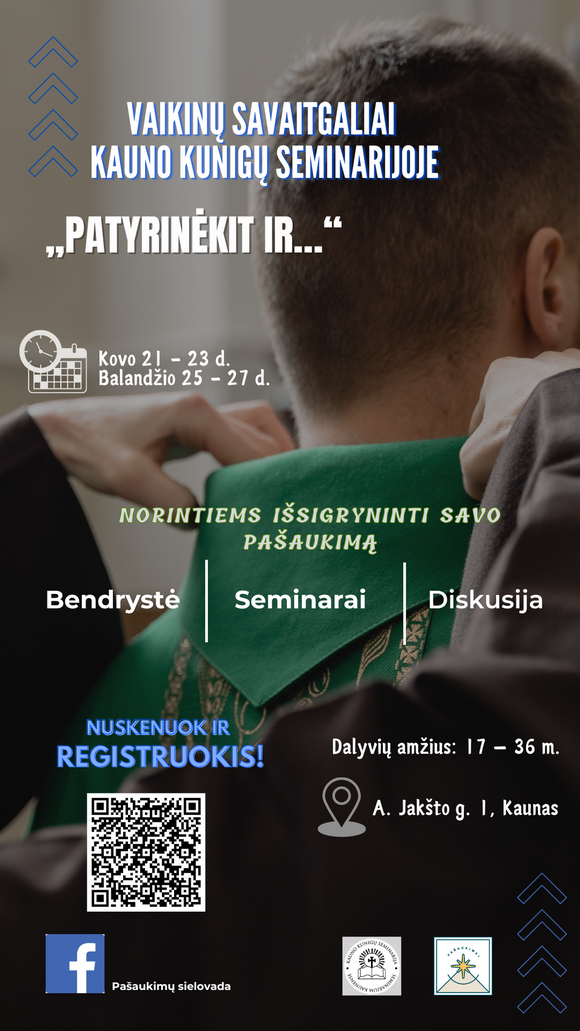 Kauno kunigų seminarija ir Kauno arkivyskupijos Pašaukimų sielovados bendradarbiai organizuoja vaikinų savaitgalius „Patyrinėkit ir…“