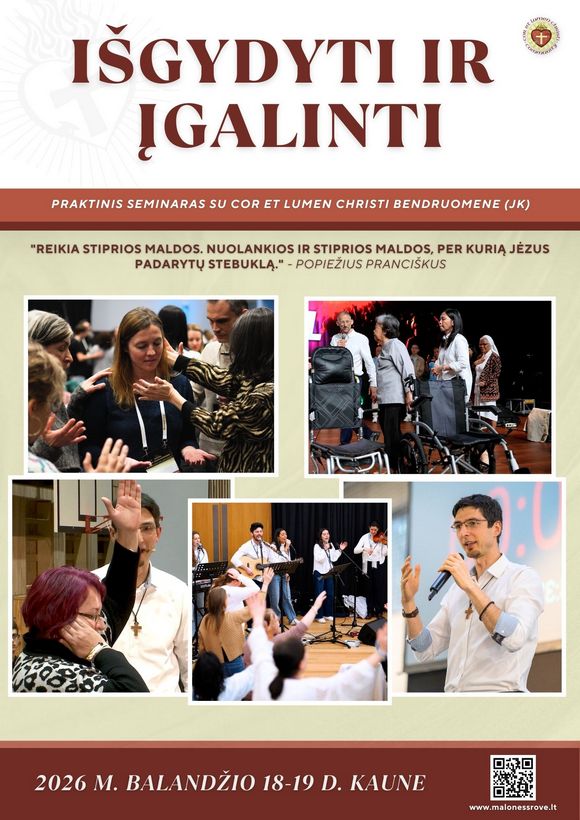 Balandžio 18–19 d. Kaune vyks praktinis seminaras „Išgydyti ir įgalinti“, kurį ves „Cor et Lumen Christi“ bendruomenė iš Jungtinės Karalystės.