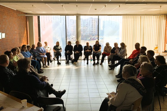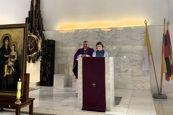 Po asmeninės atokvėpio valandėlės karitiečiai susirinko bažnyčioje ir klausėsi kun. Tomo impulso apie išpažintį. Pakviesti švęsti Sutaikinimo sakramentą, meldėmės su giesme Švenčiausiojo Sakramento adoracijoje.