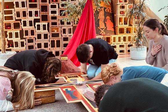 Prieš pradėdamas šį atsakingą darbą, jaunimas susitelkė maldai prie kryžiaus, taip paruošdamas savo širdis tarnystei. Kunigas Artūras Kazlauskas paruošė aliejus, sumaišydamas juos su Nardo tepalu, parvežtu iš Šventosios Žemės. Šį ypatingą, savo išsaugotą tepalą Vilma Barauskienė padovanojo svarbiai progai.
