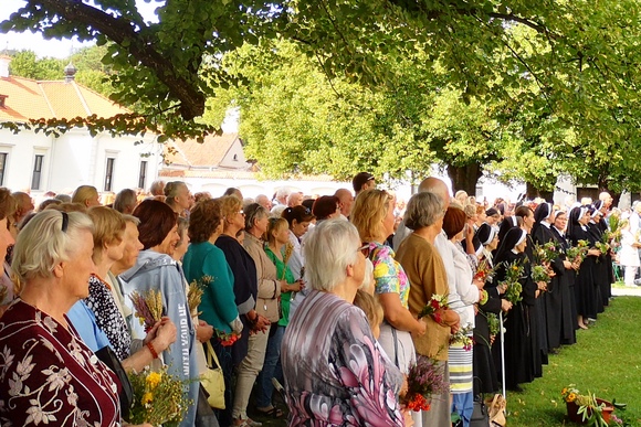 „Džiaugiamės su dangun paimtąja Marija, nes ir mūsų gyvenimas juda link dangaus, link amžinos laimės. Dangaus patirtį, tą laimės lopinėlį, mes šiandien išgyvename čia, Pažaislyje, prisimindami didžius Dievo darbus, kuriuos Viešpats nuveikė per Mariją ir Marijoje. Dėkojame seserims kazimierietėms, kurios rūpinasi šiuo vienuolyno ansambliu ir pripildo šiuos didingus pastatus maldos ir pasišventimo dvasia“, – sakė Kauno arkivyskupijos apaštalinis administratorius vyskupas Algirdas Jurevičius, sveikindamas kauniečius ir miesto svečius, rugpjūčio 15 dieną gausiai susirinkusius į Švč. Mergelės Marijos Ėmimo į dangų (Žolinės) iškilmes šioje piligriminėje šventovėje seserų kvietimu.