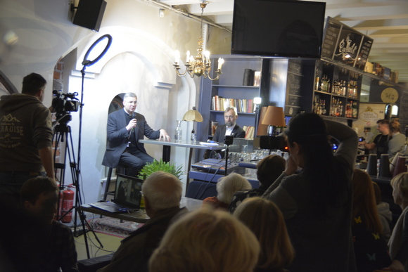 Vasario 27 d. vakare Kauno senamiesčio kavinėje „Galeria Urbana“ vos tilpo kauniečiai, atvykę į susitikimą iš ciklo „Kunigai kavinėse“. Tokius dvasininkų bei visuomenės susitikimus neformalioje aplinkoje rengianti Kauno arkivyskupijos kurija drauge su „Artumos“ žurnalu bei partnere „Kauno diena“ pirmajam susitikimui pasiūlė visuomenei visada aktualiai atrodančią temą „Ar Bažnyčia yra (ne)turtinga?“