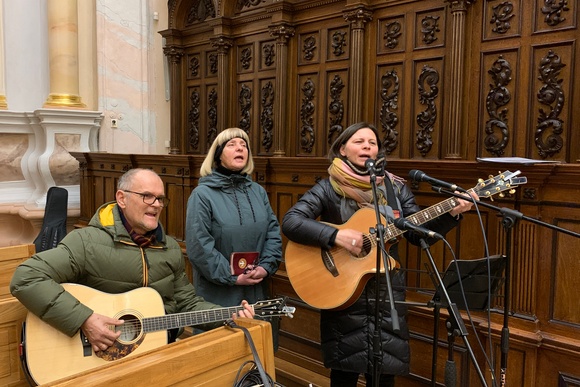 „Viešpatie Dieve, laimink Lietuvą“, – giedota šį vakarą arkikatedroje drauge su „Gyvųjų akmenų“ šlovintojais.