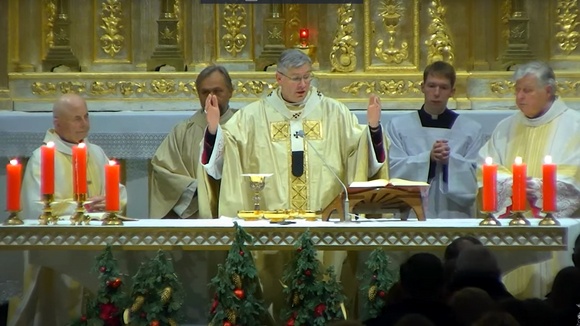 Dievo žodis apie stebuklingą įsikūnijimą Mergelėje Marijoje ir Dievo pažadų išsipildymą iš Evangelijos pagal Matą (1, 18–25) nuskambėjo iš senosios arkikatedros sakyklos, kaip vyksta per didžiąsias iškilmes, skelbiamas diakono Dariaus Chmieliausko.
