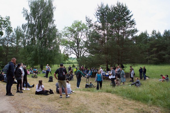 Susitikti su savimi, su kitais ir su Dievu kvietė Jono Pauliaus II piligrimų centro vadovas Mantas Kuraitis, lydėjęs grupę viso žygio metu. Kiekvienas keliavo savo ritmu – juk amžiaus skirtumas tarp vyriausio ir jauniausio piligrimo buvo 70 metų! Mažiausi dalyviai „žygiavo“ vežimėlyje ar ant tėvelių pečių, vyresnieji vaikai su dviratukais, o lengviausia buvo sužadėtiniams, kurie keliavo nepaleisdami vienas kito rankų. Nuo grupės neatsiliko ir augintiniai, suteikdami vaikams daug gerų emocijų.