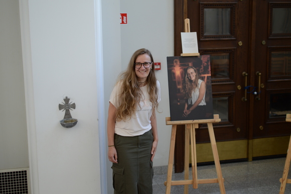 Kita parodos herojė Rūta Godliauskaitė nuotraukoje žvelgia iš Jono Pauliaus II piligrimų centro. Tai – jos širdies vieta.