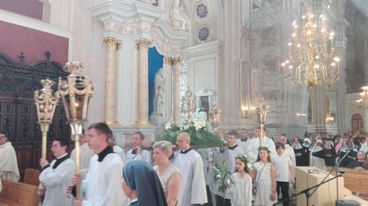 Devintinių procesija baigėsi arkikatedroje bazilikoje – jos dalyviai, atlaikę vidudienio karštį ir netrumpą kelią, pripildė šventovę. Sugiedojus padėkos himną „Tave, Dieve, garbinam“ ir pagarbinus Švč. Sakramentą, visi buvo juo palaiminti savo gyvenimo kelionei su Viešpačiu.