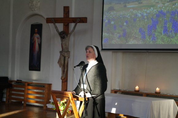 Ses. Dovyda Jaugelytė LSSC toliau tęsė vasario mėn. popietėje pradėtą temą „Esate pašaukti laisvei“ primindama, jog laisvė yra viena iš Dievo savybių, kuria Jis dalijasi su mumis. Ses. Dovyda giliau pažvelgė į vieną iš laisvę varžančių dalykų – mūsų priklausomybes. Priklausomybių būna įvairių: nuo cheminių elementų, nuo daiktų, nuo užsiėmimų, nuo santykių. Visi mes turime vienokių ar kitokių priklausomybių, tad suvokimas, kaip atsiranda priklausomybės ir kaip jos veikia, gali padėti jas įveikti. Gyvenime neišspręstos ar nesprendžiamos problemos kelia didžiulį nerimą, o priklausomybės leidžia patirti laikiną malonumą. Nuolat kylantį skausmą stengiamasi kompensuoti malonumo pakartojimu. Tad patirtas atsipalaidavimas pastūmėja mus prisirišti prie to, kas tą malonumą suteikė. Kiekvienas iš mūsų turime gilųjį skausmą, gilųjį sužeistumą savo širdyje. Esame priklausomi nuo tam tikrų dalykų – tiesiog esame atradę, į ką atsigręžti, užsimiršti, kai ieškome paguodos. Tai santykių priklausomybė, darbas, galbūt alkoholis, pasiekimai, maistas, kitų žmonių nuomonė…