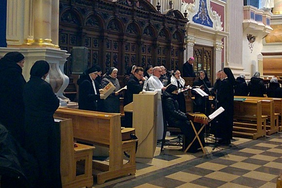 Švč. Mergelę Mariją, „neapsakomą Šviesą pagimdžiusią“, arkikatedroje pasveikino seserų benediktinių vadovaujamas jungtinis vienuolių choras. Su kantoriais – kunigais Artūru Kazlausku bei Gyčiu Stumbru seserys sugiedojo gražiausią, Rytų Bažnyčios tradicijai priskiriamą, 12 giesmių himną Dievo Motinai – Akatistą. Ypatingai Akatisto liturgijai vadovavo arkivyskupijos augziliaras vyskupas Algirdas Jurevičius, patarnavo diakonas Darius Chmieliauskas.