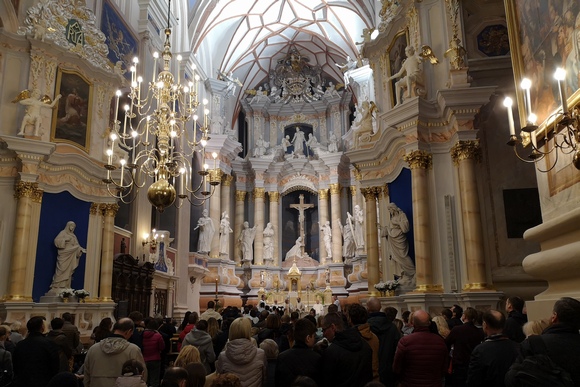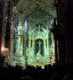 „Kam ieškote gyvojo tarp mirusiųjų? Nėra jo čia, jis prisikėlė!“ (Lk 24, 5) – ši džiugioji Evangelijos naujiena vėlų Didžiojo šeštadienio vakarą perskrodė pasaulį, pasiekė milijonus krikščionių, kurie Velyknakčio vigilijoje budėjo ir laukė Kristaus Prisikėlimo. Ir Kauno arkikatedroje gausūs Velyknakčio dalyviai, ištvermingai dalyvavę 4 dalių liturgijoje, sulaukė džiaugsmingo velykinio „Aleliuja“!