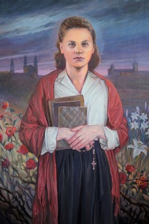 „Niekas manęs nepažemins, jei esu kilnios dvasios“, – rašoma ant šio paminklo. Kun. Andrius Končius pabrėžia, kad Elena yra gyva liudytoja, jog niekas gyvenime negali pražūti, kai liekame tiesoje (nuotraukoje – lenkų dailininko Stanisławo Czyżyckio sukurtas Dievo tarnaitės Elenos Spirgevičiūtės atvaizdas).