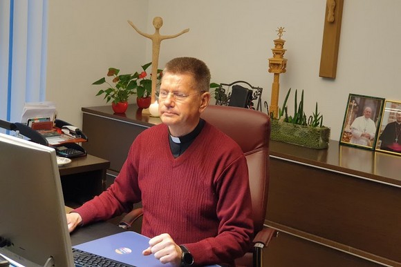 Vėliau konferencijai pirmininkavęs dekanas mons. Vytautas Grigaravičius pakvietė arkivyskupą Kėvalą aptarti dėl pandemijos susidariusią sudėtingą situaciją.