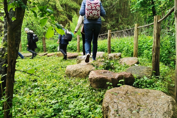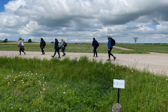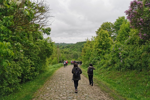 Taip keliaudamos padubysiu, Maironio keliu, papuoštu ne tik gražiais poeto eiles primenančiais akcentais, bet ir nuostabaus grožio gamta, kur pievos keitė miškus, o lygumos – kalvas, pasiekėme Dvarviečius, o čia prieš tęsdamos kelionę drauge stiprinomės karšta sriuba ir užkandžiais iš savo kuprinių. Po trumpo atokvėpio, perėjus Luknės slėnį, trumpas stabtelėjimas laukė Kaulakiuose kaip pasirengimas naujam etapui – asmeniškai apmąstyti Rožinio Kančios slėpinius. Čia prisijungus kun. Peteriui Herteliui CSsR ir toliau keliaujant tyloje, buvo galimybė atlikti išpažintį ar tiesiog pasikalbėti dvasinėmis temomis. Po paskutinio atokvėpio prie Akstinų mokyklos apmąstymą skatino dar viena mintis apie dykumą ir dar viena bendra malda – ketvirtoji Rožinio dalis apmąstant Garbės slėpinius.